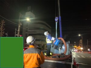伏越し(ふせこし)の清掃作業は、管路が河川や鉄道などをくぐるために深く下がった構造(サイフォン構造)になっており、通常の管路よりも土砂や汚泥が堆積しやすく、かつ危険が伴います。